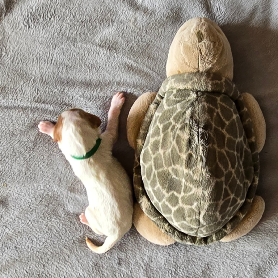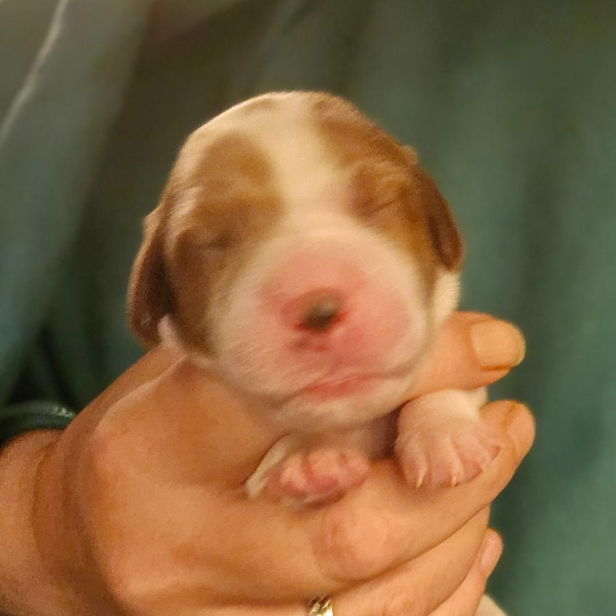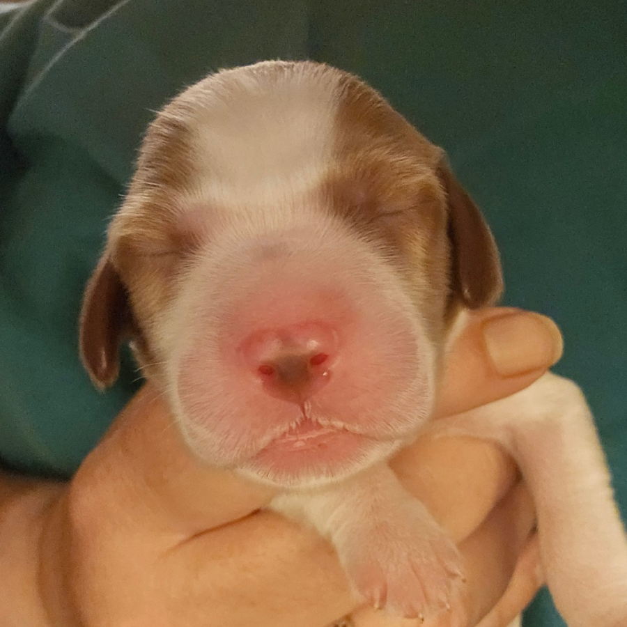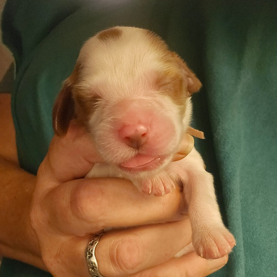 Alle Welpen trinken gut. Auch unser kleines Sorgenkind. Sie wiegt jetzt 242g, hat also schon 46g (23% ihres Geburtsgewichts) zugenommen. Ich hoffe, sie nimmt weiterhin so gut zu. Dann hat sie ihre Geschwister bestimmt bald ein.