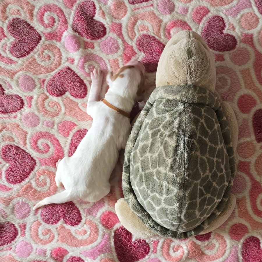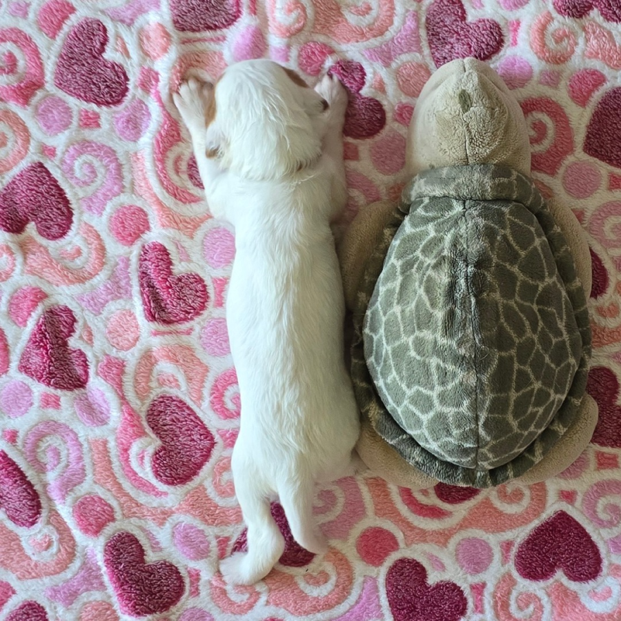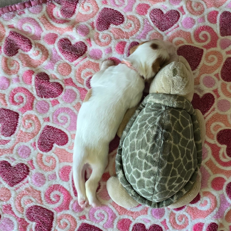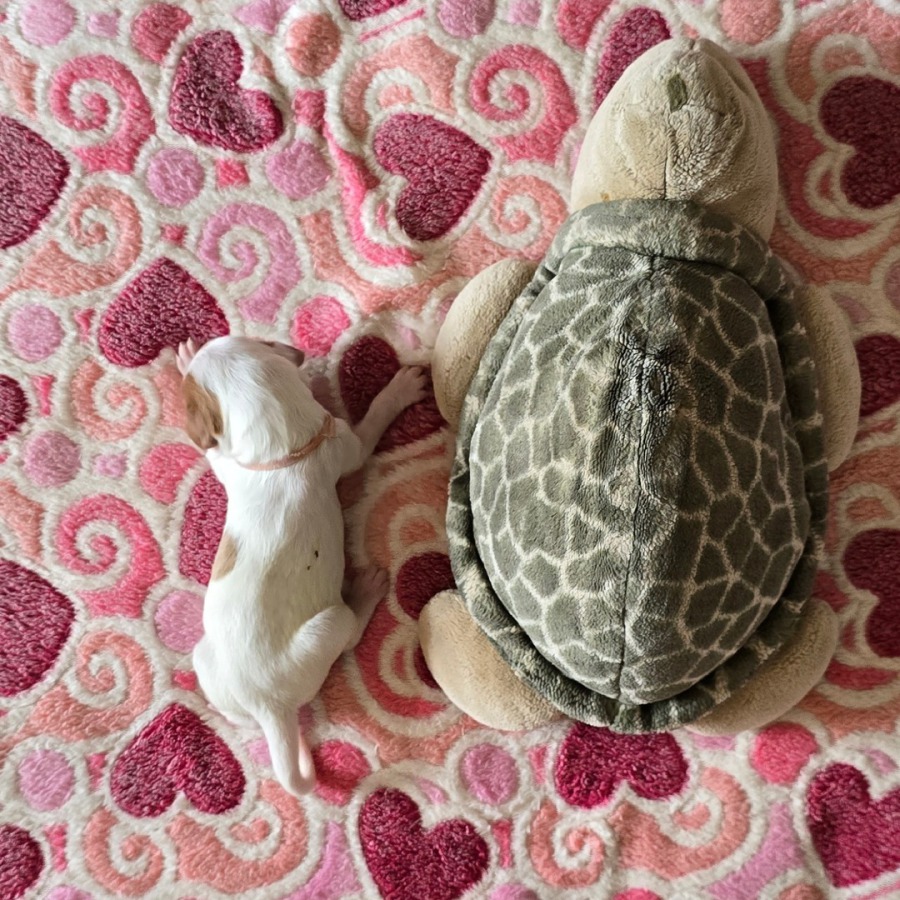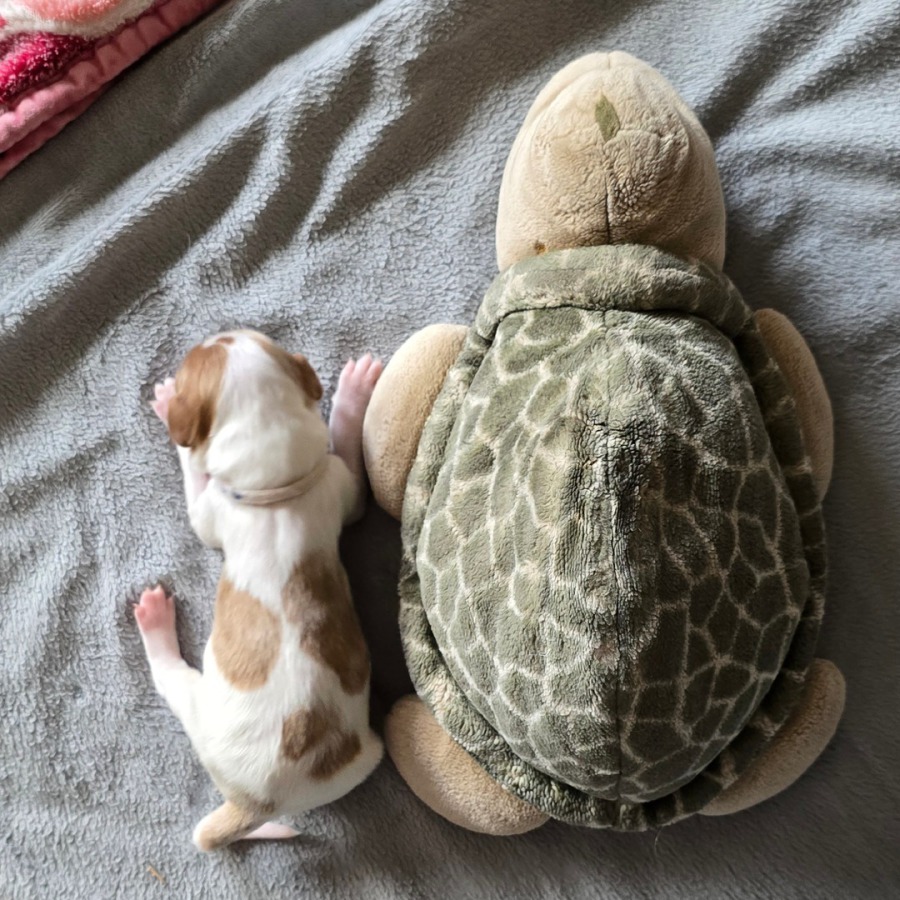 Alle Welpen trinken gut. Auch unser kleines Sorgenkind. Sie wiegt jetzt 242g, hat also schon 46g (23% ihres Geburtsgewichts) zugenommen. Ich hoffe, sie nimmt weiterhin so gut zu. Dann hat sie ihre Geschwister bestimmt bald ein.