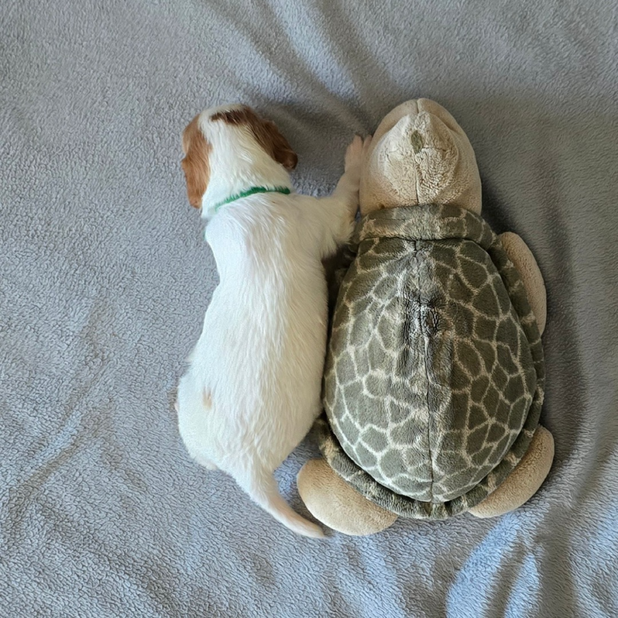 Eragon (weißes Halsband) liebt kuscheln über alles.