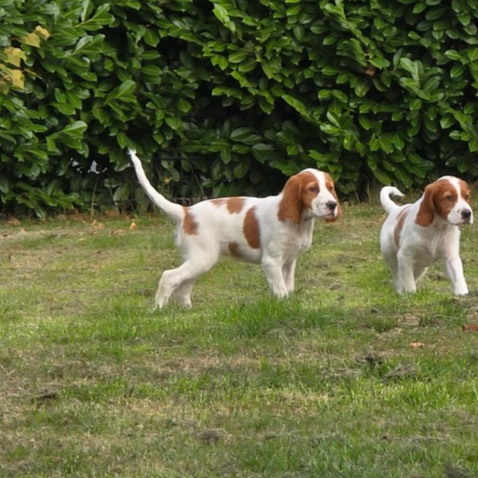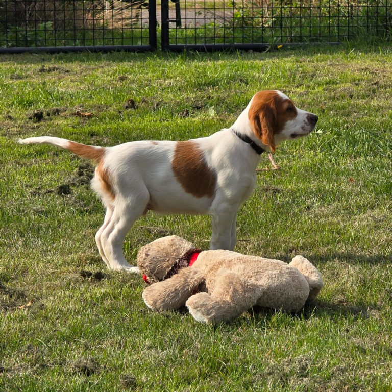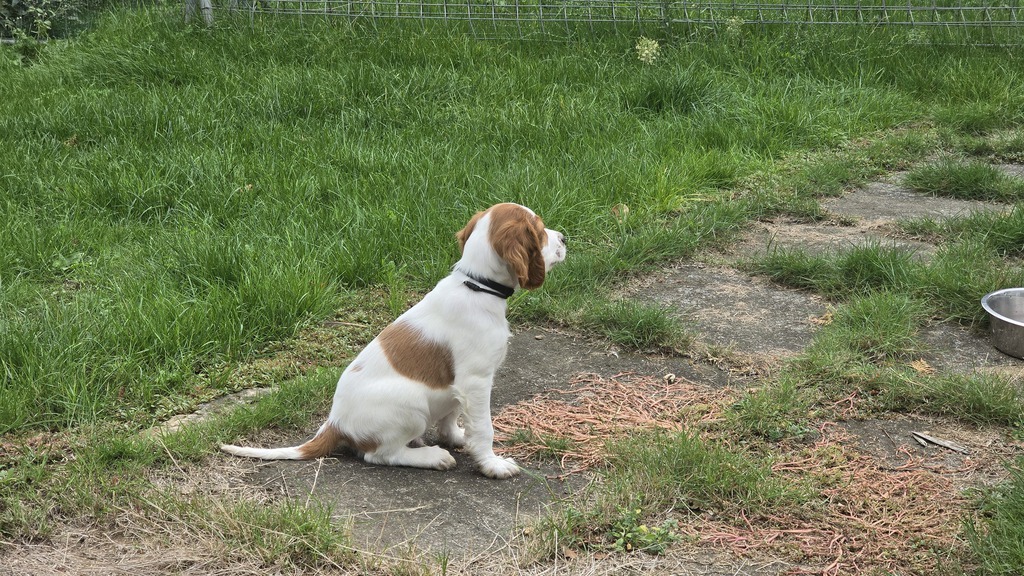 Émer (braunes Halsband) ist manchmal ein bisschen schüchtern, aber auch sehr neugierig. Sie sucht Menschen, die ihr zeigen wie toll die Welt ist.