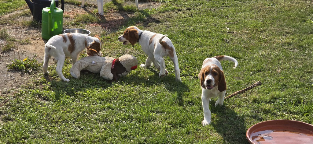Éala (rotes Halsband) tobt gerne mit ihren Geschwistern und würde wohl am liebsten ewig mit ihnen zusammenleben. Doch mit den richtigen Menschen, würde sie bestimmt noch viel lieber zusammen Spaß haben. Doch bisher hat sie diese Menschen leider noch nicht gerfunden.